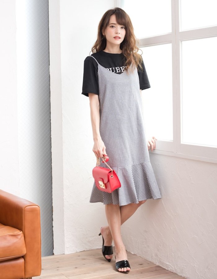 最新トレンド、ギンガムチェックを取り入れたキャミワンピ。