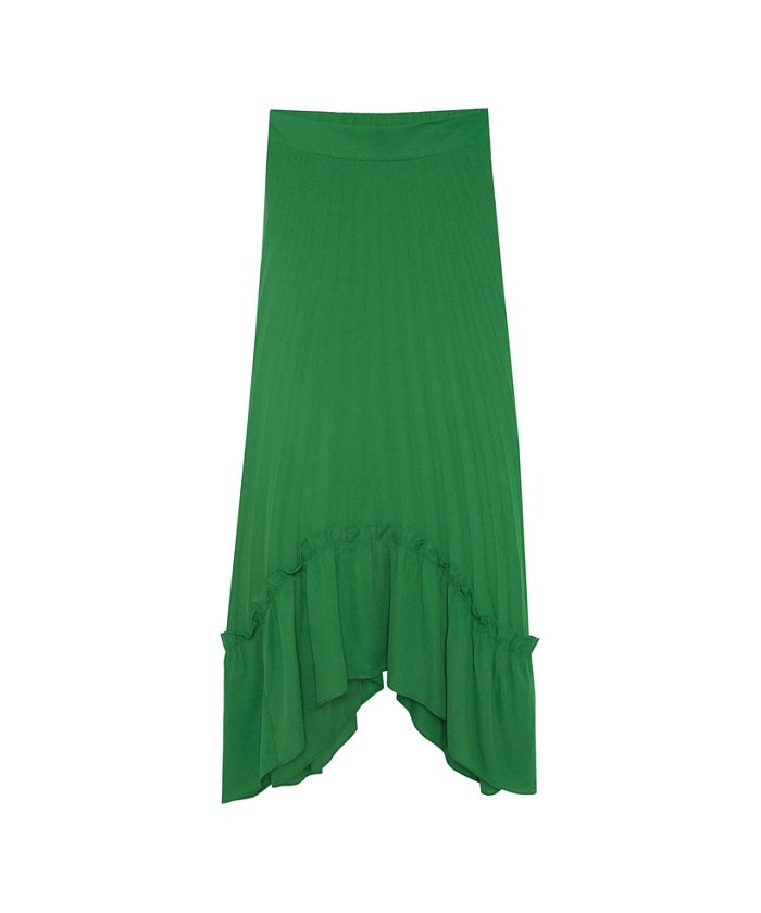 繊細なプリーツと、優雅なフリルの組み合わせが印象的なフレアスカート。
