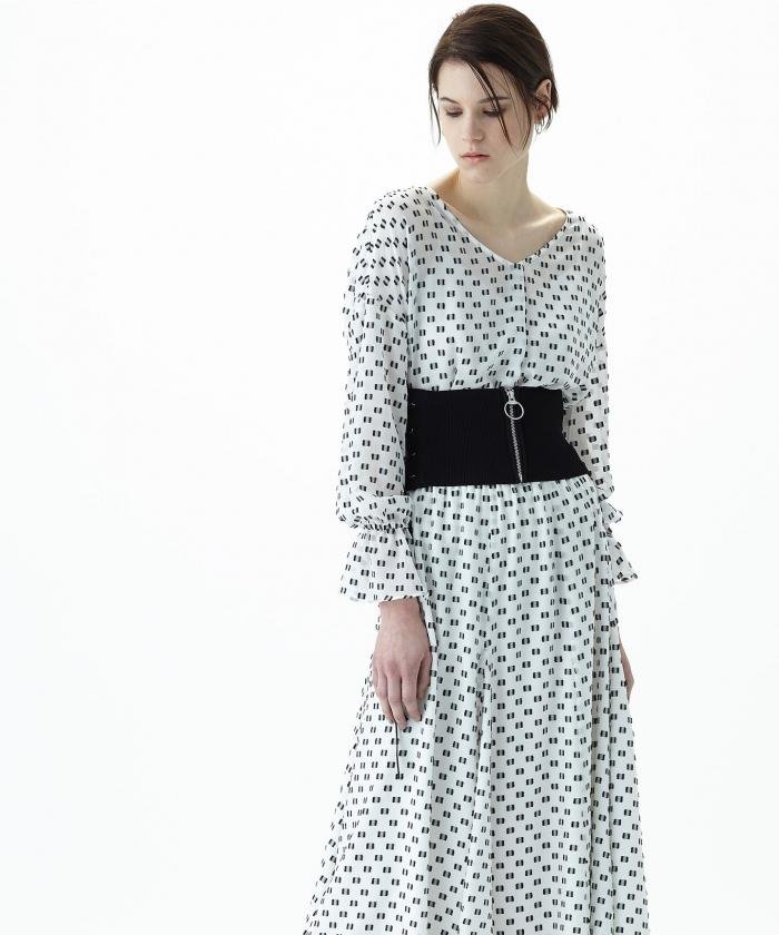目を奪うとばし柄ドットジャガード素材のトップス。高級感あるシルク混の柔らかな風合いが、空気をはらんだ様にふわっと着用できる軽やかな一着です。余計な装飾を省いたデザインで甘過ぎない大人の優雅な雰囲気を演出。控えめなフリル袖もセンシュアルなアクセントに。シンプルながら気品と存在感を持ち合わせた特別な一着として、デイリーにお楽しみください。 ワンピースの様に着用できるお揃い生地のドットジャガードスカート(38121118)のご用意もございます。