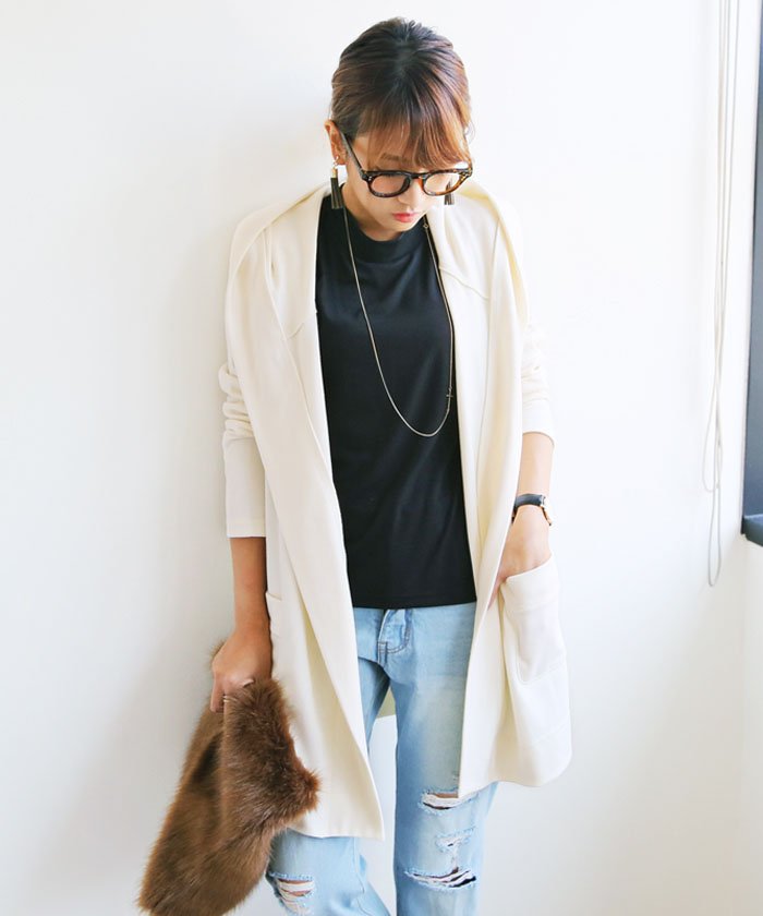 うっすらと起毛したような柔らかな細リブの 質感が心地よい♪新作カーデが入荷しました。 ゆるっとしたルーズなフードが こなれ感たっぷりなデザイン! サイドポケットあり、ヒザ上までのロング丈です♪ 肩まわりはスッキリとしたセットインの仕様。 インにニットを着ても、少し余裕のある袖幅です。 MODEL:身長159cm ※撮影時のライティング、ご覧になっているモニター・PC環境により 実際の商品と色味が異なって見える場合がございます。 ご了承の上お買い求め下さい。