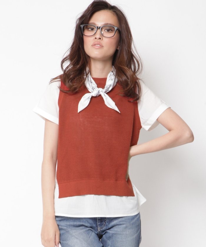 トレンドが詰まったスカーフ付きレイヤード風ニット。裾ちらのレイヤード風ニットに、トレンドのスカーフがセットになったアイテム。セットのスカーフはネックに巻くのも良し!手首に巻くのもよし!また、バッグにつけるのもアリです。ニット自体はシンプルなデザインですが、レイヤード風でアクセントがあるので、1枚でも着れちゃいます。どんなパンツとも相性が良いので、着まわしの効くアイテムですよ♪♪