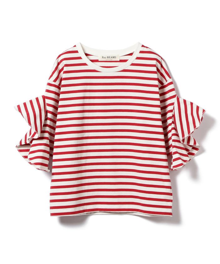 Ray BEAMS / ボーダー ラッフルスリーブ Tシャツ