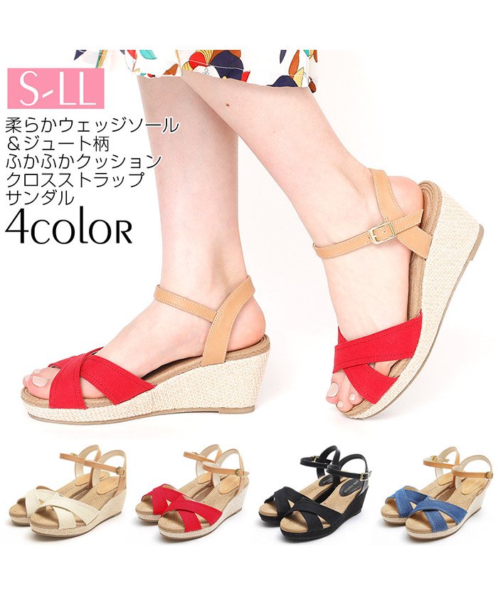 柔らかウェッジソール&ジュート柄ふかふかクッションクロスストラップサンダル