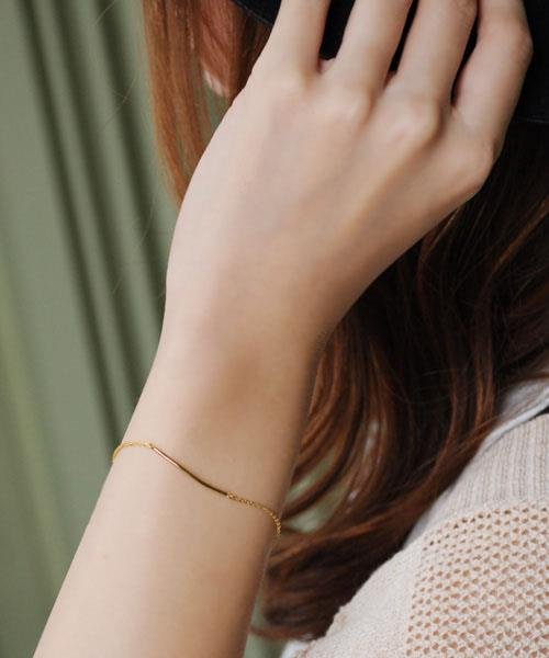 ゆるやかに描くカーブが女性らしく優しい印象のチェーンブレスレット。