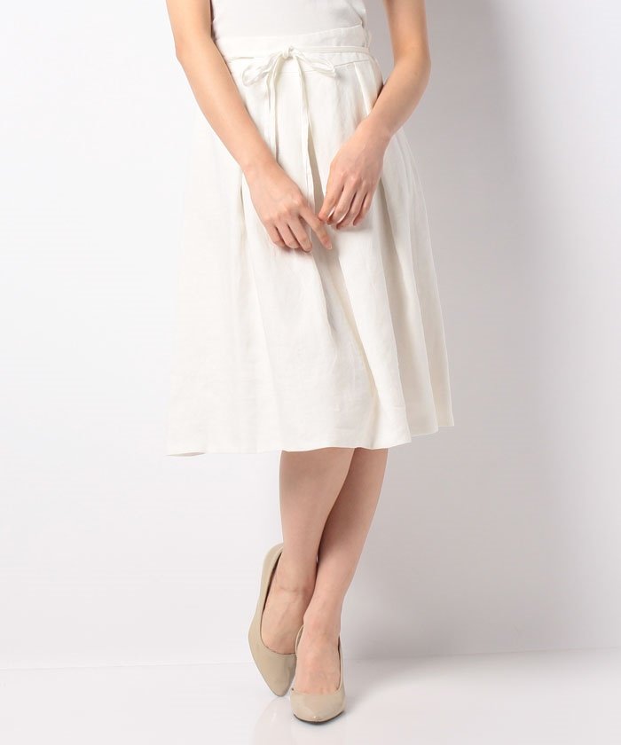 涼やかな着用感とナチュラルなルックスが楽しめる麻素材のスカート。ウエスト部分に共布のリボンベルトをあしらってトップスをインしたスタイルもフェミニンに仕上がる上品デザインに。