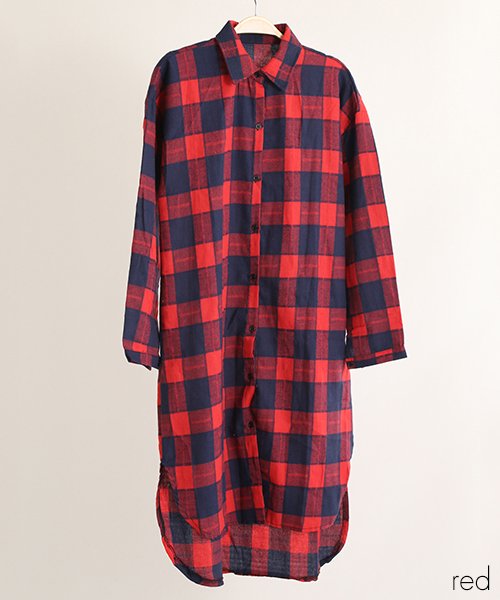 シンプルデザインチェック柄ロングシャツ 【D−4】【ブランド:glam city】