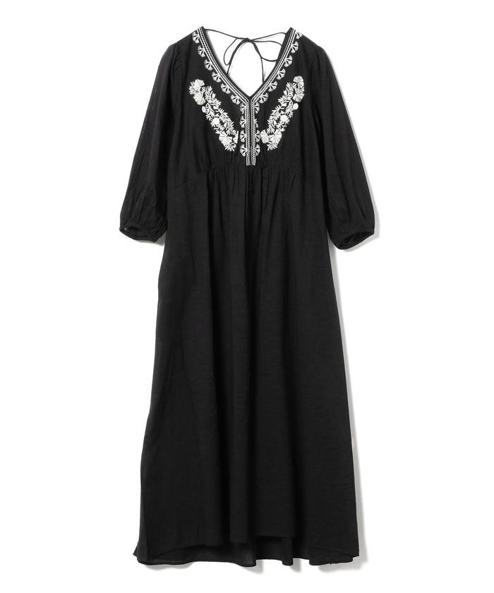 ・繊細で美しい刺繍が目をひくマキシ丈ワンピース